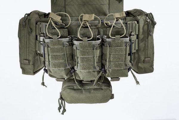 Three compressible DBL magazine pouches on the front